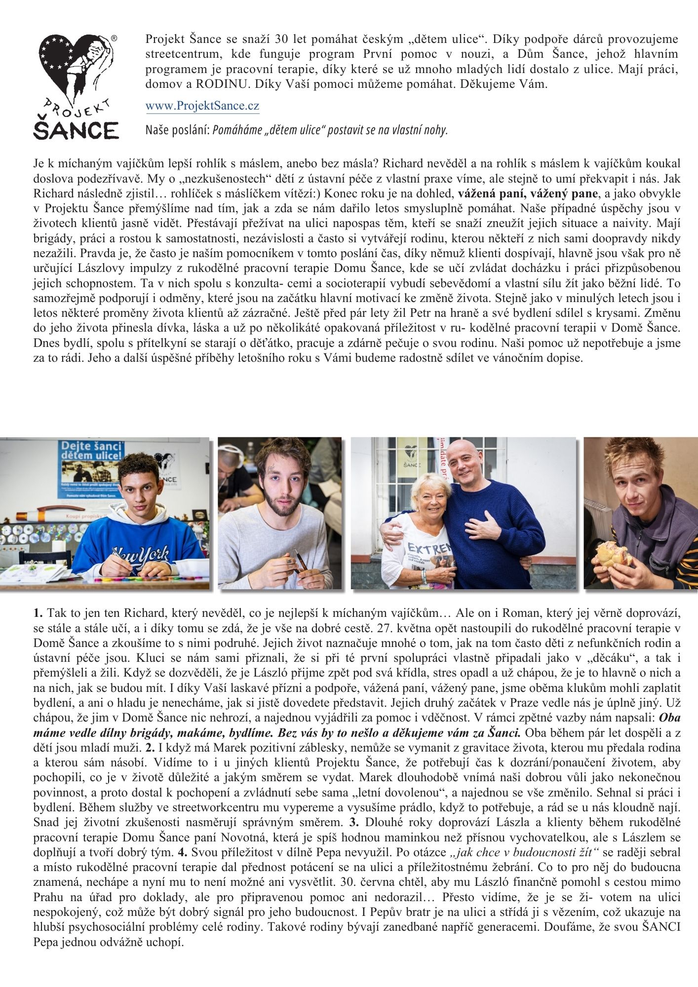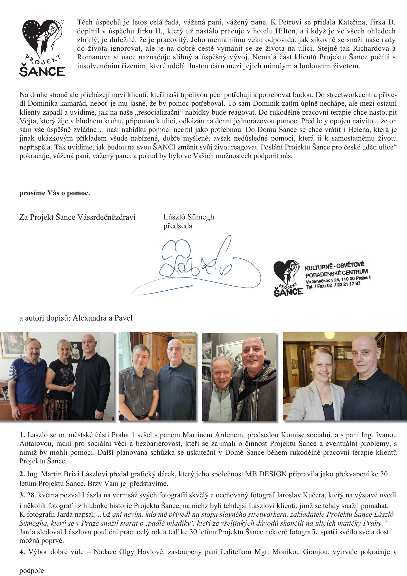 I letos jsme v Projektu Šance v pomáhání „dětem ulice“ nezastavitelní, což samozřejmě neznamená, že jsme vždy úspěšní. Přečtěte si o tom ostatně v dalším informačním dopise, který Projekt Šance vydal.